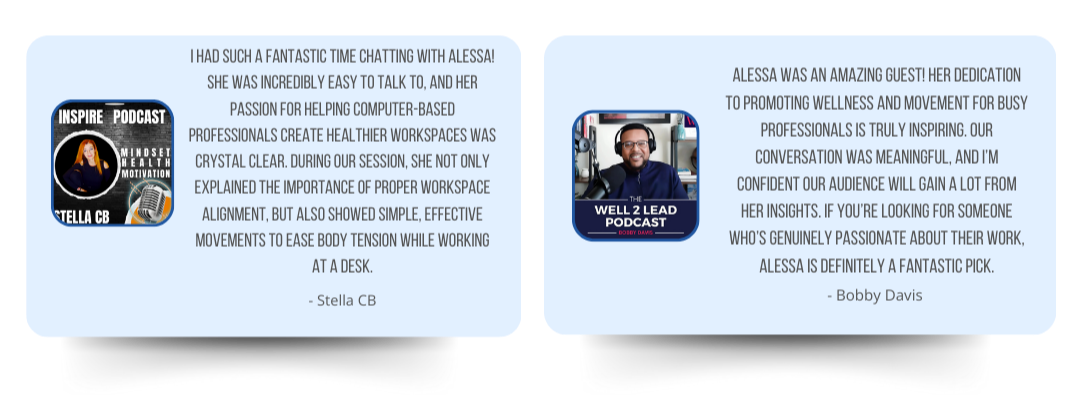 Whether you're looking to eliminate desk pain, boost your productivity, or bring workplace wellness to your organization - let's talk about how I can help.